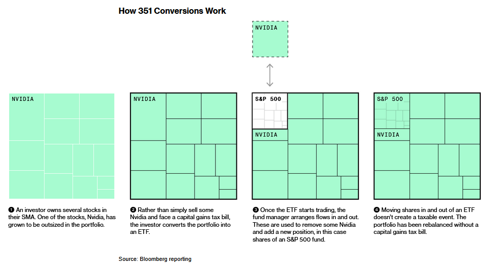 The following graphic is from a Bloomberg article on 351 ETF conversions.