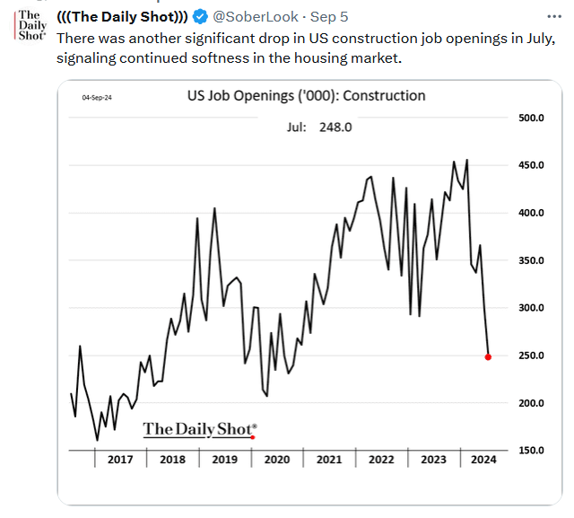 Per the BLS report, payrolls increased by 142k, below expectations of 165k. However, the prior two months were revised lower by 86k. The unemployment rate fell to 4.2% from 4.3% as expected. Important to the Fed, hourly earnings rose by 0.4%, a tenth more than expectations. However, the prior month was revised downward by 0.3% to -0.1%. The latest BLS and ADP data, taken in stride with the monthly and outsized annual -880k revisions a few weeks ago, clearly shows the labor market is weakening. But is it weakening enough for the Fed to justify cutting rates by 50 bps?