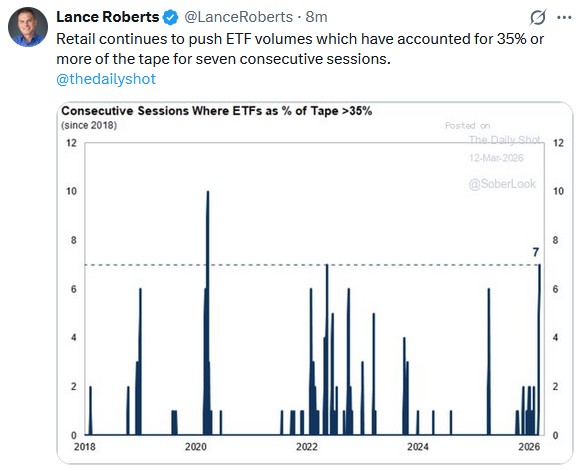 Back in February, we highlighted the extreme bifurcation building inside the market. The perceived “Value-oriented” sectors, like Energy, Materials, Industrials, and Staples, had surged 12–21% year-to-date, while the broader index sat essentially flat. That divergence, driven by the “reflation narrative,” was a warning sign, not a buying opportunity. When capital crowds into slow-growth, economically sensitive sectors while abandoning quality growth, the market’s internal structure weakens. Breadth narrows, volatility rises, rallies shorten, and drawdowns accelerate.