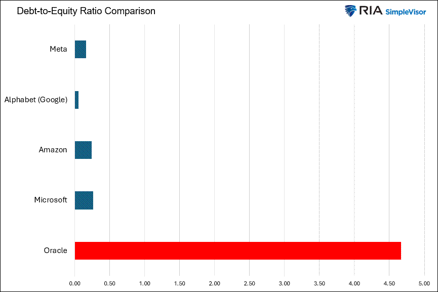 The technology sector has been on edge in recent months, in part due to the evolving landscape of AI innovation funding. More specifically, equity investors of the largest AI companies are growing increasingly concerned because debt is being used more frequently as cash flows/profits are no longer sufficient to fully cover capital expenditures. Oracle sparked the concern with a $18 billion debt offering last September, followed by a $25 billion offering in February. Given the large amount of its outstanding debt, Oracle’s CDS implies a junk-bond rating for the investment-grade-rated company. Oracle investors rightly have some concern as it has much higher debt levels than its largest competitors. However, Oracle’s rising debt levels negatively affected shares in companies like Amazon, Google, Meta, and Microsoft.