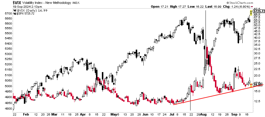 As noted last week, the trend of higher lows and the triggering of the MACD “buy signal” all suggested the recent correction phase was over. That was confirmed this past week, as the market broke out to new all-time highs following the 50 basis point cut in the Federal Reserve overnight lending rate on Wednesday.