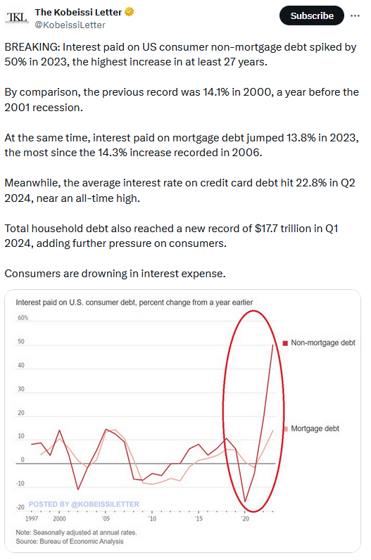 “I’ve long been in the ‘higher for longer’ camp…The facts have changed, so I’ve changed my mind. The Fed should cut, preferably at next week’s policy-making meeting.…Although it might already be too late to fend off a recession