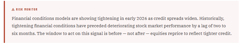 - Keep watching the CDX spread level — don’t declare the all-clear prematurely. This signal requires monitoring, not a one-time response. If spreads continue widening from here, the risk posture should tighten further. If they reverse and compress back below nine-month highs over the coming weeks, the urgency eases. Set a weekly review cadence on credit spread data. The bond market will tell you when the risk is rising and when it’s fading — but only if you’re paying attention.