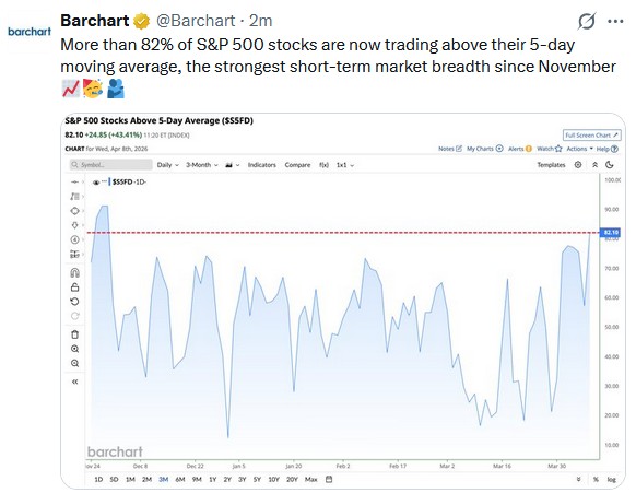 Earnings season adds another layer. Q1 reports start landing this week, and expectations were cut aggressively enough during the selloff that “better than feared” is a realistic bar for a broad swath of S&P 500 companies. Modest beats matter here because they tend to accelerate the execution of share buybacks. Companies sitting on authorized repurchase programs often step in after sharp drawdowns: management sees the stock as cheap, the board has already approved the authorization, and buybacks become mechanical, underpinning the rally regardless of the next headline.