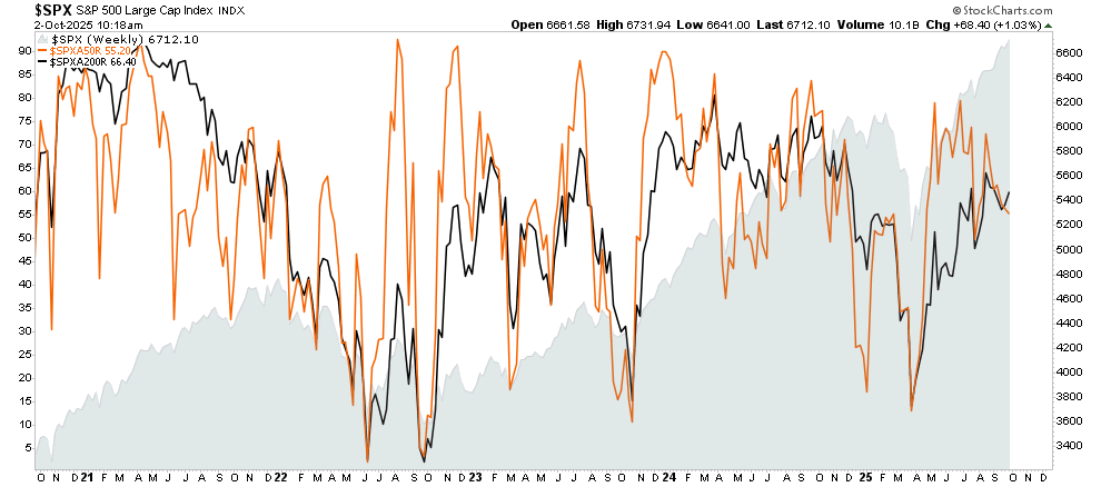Yesterday, we discussed the markets’ extended run of 5 months of consecutive advances. Despite the ongoing advance, as the market continues to register new highs, the overall breadth of the market remains weak on several levels. First, the negative divergence of the percentage of stocks trading above their respective 50 and 200-DMA remains a concern. Previous such divergences, as the market was rising, eventually preceded more significant downturns.