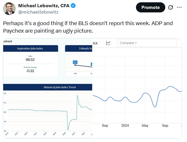 - NOTE: Due to the government shutdown, some of the scheduled economic releases (e.g., employment) may not occur today.