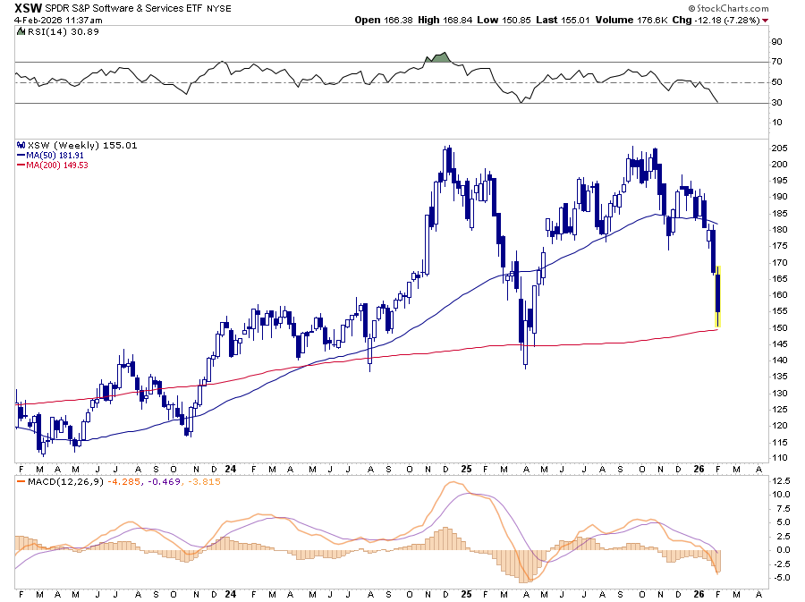 Yesterday, we discussed the market rotation setup. Over the past few weeks, the media has begun focusing on the SaaS (Software as a Service) sector, which has been under immense pressure. This has been a function of the market repricing both growth duration and business-model defensibility simultaneously. The near-term catalyst has been a fresh wave of AI disruption anxiety; investors are increasingly worried that powerful, general-purpose AI tools could replicate or commoditize parts of what many software platforms sell, especially workflow, knowledge, and productivity functions. That fear doesn’t require an immediate collapse in earnings to pressure prices; it only takes a change in how much investors are willing to pay for future cash flows.