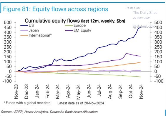 But we also see exuberance in overall equity allocations in the markets climbing higher with the market.