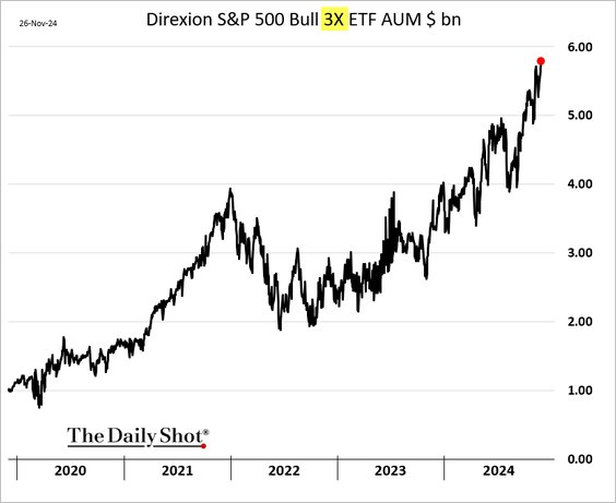 However, it isn’t just that one ETF that investors are aggressively piling funds into. The chart below shows the surge in all levered ETFs.