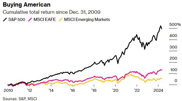 On top of that, since 2015, a handful of US companies have driven a large share of S&P 500 earnings growth. The Bloomberg Magnificent Seven Index has seen annual earnings growth of 36% since 2015, while the rest of the S&P 500 grew earnings by roughly 6% annually. Ultimately, the Author’s idea is that a mean reversion is likely. It’s certainly possible that global diversification isn’t dead, but it doesn’t mean the US is bound for underperformance. It could simply mean the S&P 500’s days of drastic outperformance are numbered.
