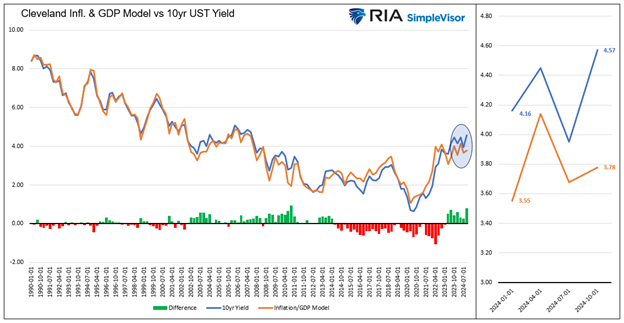 Did the Fed cut rates? And should that spike inflation concerns? Technically, the Fed has reduced the Fed Funds rate by 100bps. However, longer-term yields, which drive economic activity and inflation, have risen significantly. Despite the Fed rate cuts, monetary policy is much more restrictive than when they first cut rates in September, as shown below.