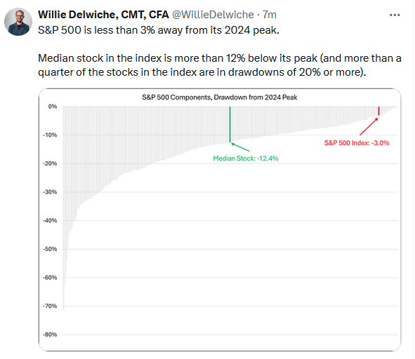 Two things have continued to plague the markets over the last few days that are entirely “sentiment” driven: concerns that “tariffs” could lead to inflationary pressures and valuations. The concern over tariffs has created a feedback loop in the economy. Since the election, producers have been buying products to get ahead of tariffs, which increased demand for those products, pushing prices higher, as seen in recent ISM reports. In other words, the fear of tariffs creating inflation caused inflation by their actions. However, as discussed in this article, tariffs haven’t caused inflation historically.