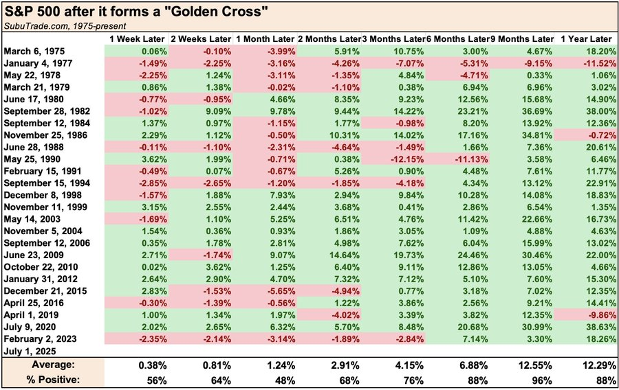 With that stated, the historical performance of “Golden Crosses” tends to yield positive returns, but that does not necessarily come without volatility in the near term.