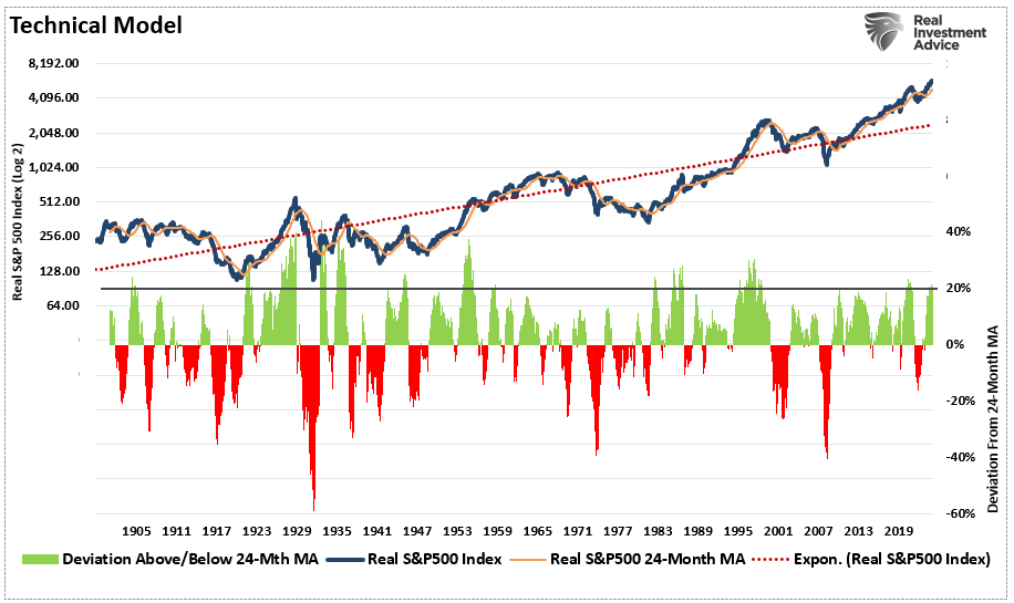 The last part of that statement is the most critical. Nothing in the market is guaranteed. Therefore, we must continue managing risk accordingly until the market’s direction is revealed. When that will be, we are uncertain, so we continue to watch the technicals, make small moves within portfolios, and reduce volatility risk as needed.