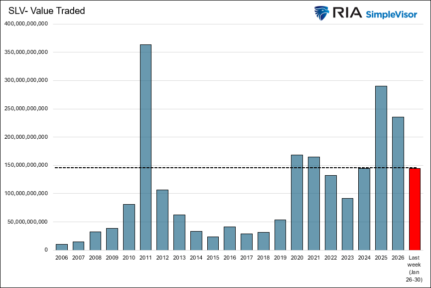 - Moreover, the dollar value traded last week (January 26-30) was over $144 billion, surpassing all but five of the 21 years shown.