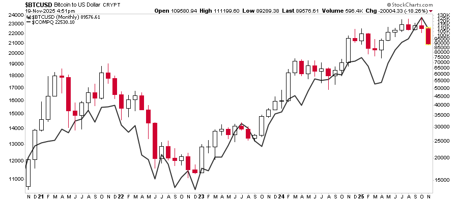 Technically, the selloff has broken several key support levels, all major moving averages, and has triggered a “death cross” with the 50-day moving average crossing below the 200-day moving average. That technical breakdown triggered a risk reduction among traders, reinforcing the decline and eroding confidence in smaller-cap altcoins, which are falling faster than Bitcoin. The good news is that Bitcoin is deeply oversold and due for a reasonably significant bounce that can be used to rebalance positioning.