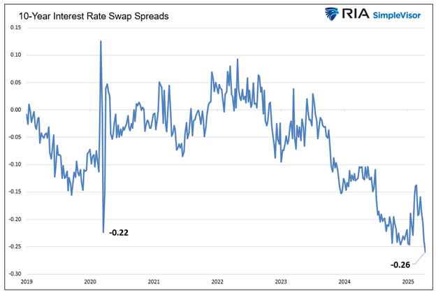 One thing we are watching very closely now is oil prices, which remain under pressure. Oil prices are back to pre-pandemic highs, and the risk is a break into the low 50s. The problem with oil is that the President wants to “drill-baby-drill,” which will increase supply amid weakening economic demand. Such will result in lower prices, and push-back from oil producers who won’t drill low-profitability wells.