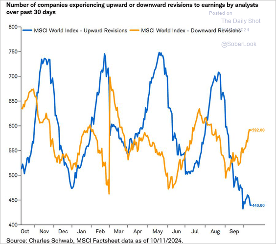 - Consumer Weakness: Should consumer spending continue to decline, particularly in the critical holiday season, many companies may find themselves cutting profit forecasts for Q4, further dampening the outlook for 2024 and into 2025.