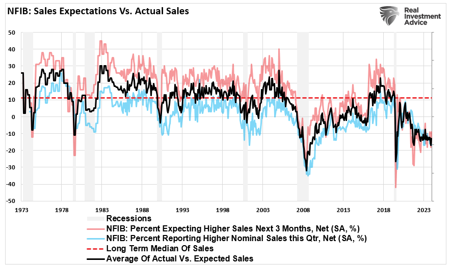 While consumer spending has remained robust so far, many small businesses are not seeing the same level of demand that Wall Street analysts expect. If sales expectations continue to weaken, it could signal a broader slowdown in economic activity, particularly among the smaller enterprises that drive job creation and innovation. Unsurprisingly, as sales demand slows, the expectation for capital expenditures has plunged to some of the lowest levels on record. This is certainly not a sign of a robust economy, and historically, it suggests that GDP will weaken into next year.”