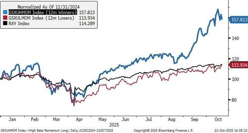 “This time is not different,” as we saw it happen in 1999. Then again, in 2021. You’re watching another speculative cycle unfold in real time. Retail investors are piling in, emboldened by rising prices and a fear of missing out. As stock indexes keep pushing higher, each new high incites more buying as investor caution fades. Such has been the case since “Liberation Day,” as momentum stocks continue to outperform strongly, particularly in areas of secular themes such as artificial intelligence or high-beta portfolios.