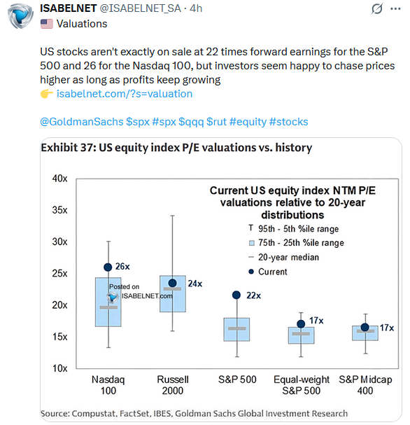 “This broad wave of bullish behavior isn’t isolated to sentiment surveys. Positioning data, equity fund inflows, and trading behavior confirm the lack of bears in the market. Markets are rising not because of strong earnings or economic acceleration, but because of optimism about future prices. In this environment, price momentum drives buying, not fundamentals. We see that in the overlay of consumer sentiment about higher prices versus valuations. Simply, investors are willing to overpay on expectations that things will continue to improve.”