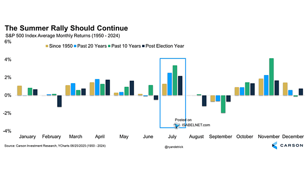 July tends to be a better-performing month overall; therefore, portfolio positioning should emphasize quality large-cap growth, particularly in sectors demonstrating strong momentum. However, monitor breadth as a cue to trim excess risk as needed. Tactically, this is a prudent time to review stop-loss levels, maintain appropriate diversification, and watch for signs of broadening participation to validate further upside.