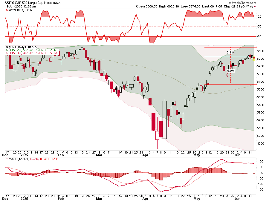 The market’s bullish trend continued this week, and it is rapidly approaching all-time highs. However, an Israeli strike on Iran early Friday morning sent stocks tumbling at the open, but as of midday, as I am writing this report, most of the initial decline has fully recovered. We noted that a correction or consolidation process is needed to work off some short-term overbought conditions. But, as seen on Friday, any pullback is quickly bought by investors chasing the market in the near term.