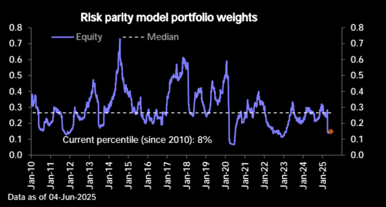 Notably, risk parity models remain grossly underweight equities. Risk parity portfolio models are an investment strategy that allocates risk equally across different asset classes, rather than allocating capital based on traditional metrics like market value or equal dollar amounts. The goal is to create a balanced portfolio where each asset contributes roughly the same amount of risk to the overall portfolio, regardless of its expected return or market size. While risk/parity models seek to avoid unbalanced risk exposure, they are currently on the “wrong side” of the equation, leading to underperformance risk. If this market continues to rally, we should expect to see these allocations rise, providing further support to the rally.