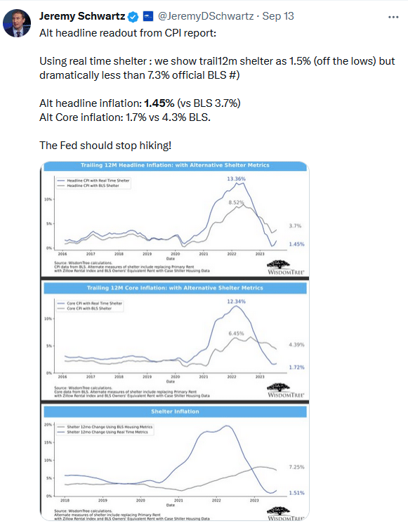 “Based on its current assessment, the Governing Council considers that the key ECB interest rates have reached levels that, maintained for a sufficiently long duration, will make a substantial contribution to the timely return of inflation to target.” And with that statement, the European Central Bank (ECB) appears to have halted its rate hiking cycle. The announcement followed a surprise rate hike from 4.25% to 4.50%. Unlike the U.S. economy, Europe has witnessed sluggish economic growth. To wit, the ECB reduced their economic growth forecasts, cutting this year to +0.7% and reducing next year from +1.5% to +1.0%. The underlying message in today’s announcement is that they appear comfortable that weak economic growth coupled with high-interest rates will, in time, reduce inflation back to normal levels.