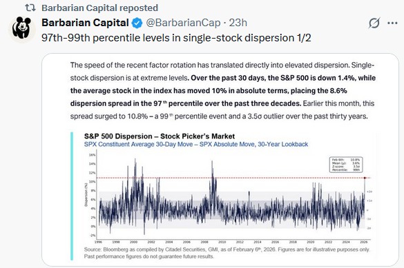 Credit Concerns: Monday’s Commentary noted that the private credit loan market is coming under increased pressure due to loan losses and possible fraud. Banks and brokers (GS/MS) are major players in this asset class. Thus, the concerns roiling the private credit market are spreading to the banks and brokers. Compounding the issue for the financial sector, banks are seeing rising consumer delinquencies.