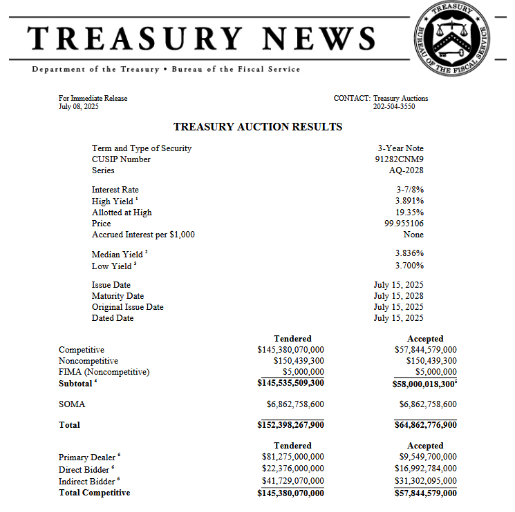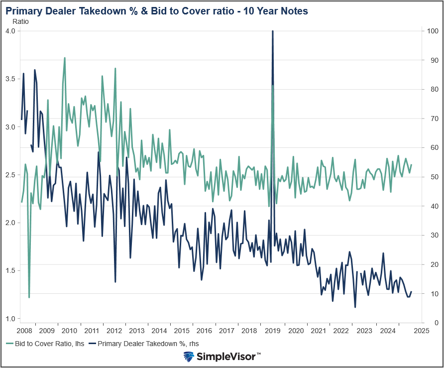 - Primary dealers took down a below-average portion of the bonds.