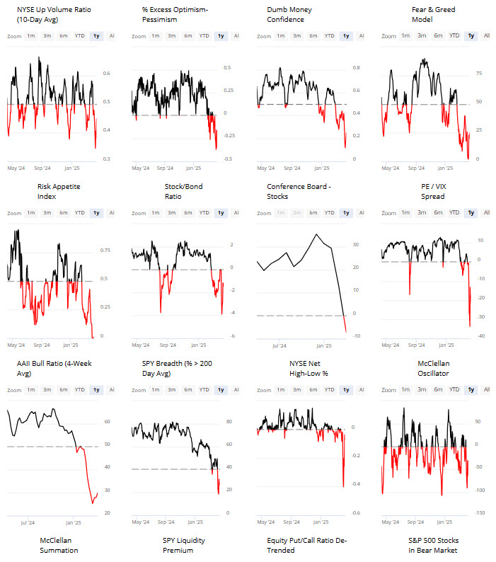 Here is a sample of some of the indicators. As you will notice, all of them are trading at rather extreme “risk-off“ levels.