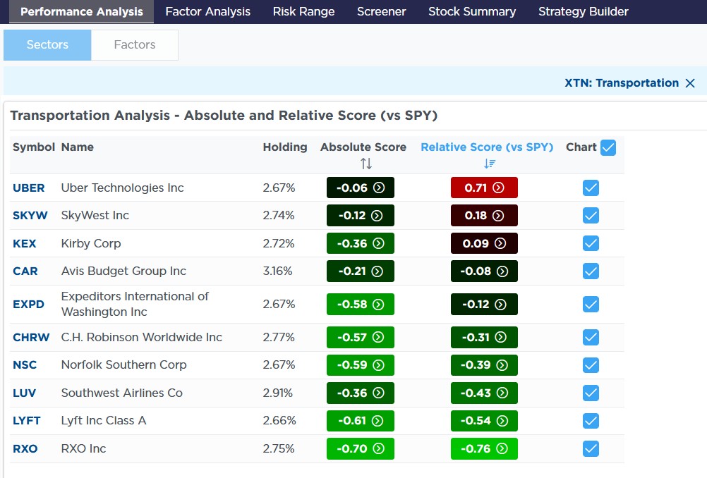 Interestingly, the sector likely to be directly impacted by tariffs the least is and continues to be the most oversold sector. As the SimpleVisor table below shows, transportation stocks have the most oversold relative score. The scatter plot on the right shows that the sector has been “orbiting” over the last seven weeks in the lower left quadrant. This quadrant represents a situation where the absolute and relative scores are oversold.