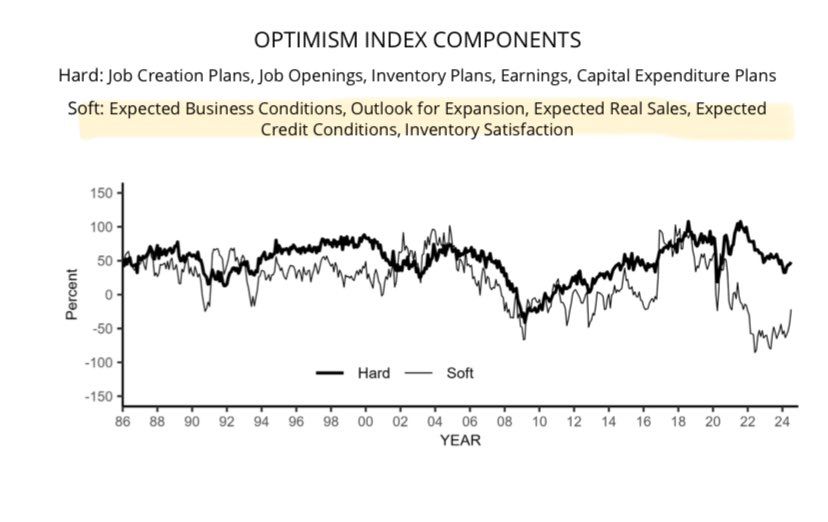 The second factor boosting optimism is interest rates. Many small businesses are heavily indebted and often find it harder to get credit. Thus, expectations for lower interest rates and easier credit conditions should also create optimism for some small business owners.