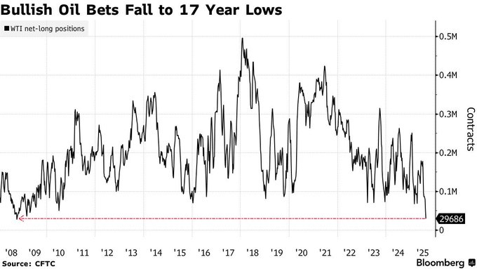 “Hedge funds slashed their bullish position on crude to the lowest in about 17 years as risks of additional sanctions on Russian crude oil waned, bringing concerns about a global supply glut back to the fore. Money managers’ net-long position on West Texas Intermediate shrank by 19,578 lots to 29,686 lots in the week ended Tuesday, data from the Commodity Futures Trading Commission show. That’s the lowest since October 2008.”